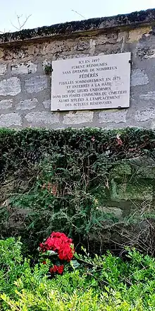 - Paul Lafargue, célèbre communard, gendre de Karl Marx, représentant de la France dans la Première internationale et théoricien socialiste, est inhumé en face du mur des Fédérés en 1911, avec son épouse, après leur suicide.