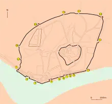 Cette muraille, au tracé géométrique et d'une hauteur de 9 m, d'une grande taille et d'une grande solidité, était taillée de créneaux saillants, comportant plusieurs tourelles et hautes tours ainsi que de nombreuses portes et ouvertures (dix-sept au total). D'un périmètre d'environ 2 600 m, elle bordait une superficie de 44,5 hectares.