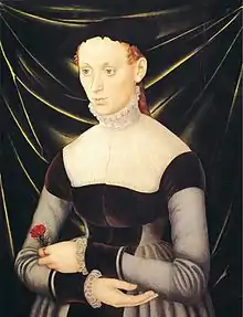 - Femme à l’œillet rouge, école de Lucas Cranach, huile sur bois (vers 1530) ;
