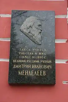 Le musée Mendeleïev est installé dans un appartement occupé à Saint-Pétersbourg par le chimiste russe Dmitri Mendeleïev, inventeur en 1869 du tableau périodique des éléments chimiques. Il présente des souvenirs liés à sa vie et à son travail.