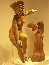 Urne funéraire (Ve siècle) et figurines de terre cuite.