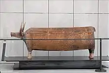 Ce sarcophage zoomorphe ou erong, issu de l'art des Toraja Sa'dan, un peuple important de l'île de Sulawesi en Indonésie, représente un buffle d'eau, l’animal domestique et sacrificiel.