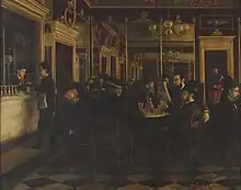 - Le café Vila. Fondé en 1875, le café Vila est devenu un point de réunion des intellectuels de la Gérone de la fin du XIXe siècle et du début du XXe siècle. Situé à la Plaça del Vi, en plein centre de la ville, il est devenu un lieu de rencontre et d'échange des préoccupations sociales du début du siècle. Disparu aujourd'hui, son apparence ne persiste qu'à travers d'anciennes photos et la peinture de Pons Martí, qui en fait un portrait où on peut deviner l'ambiance qui s'y respirait.