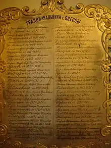 Liste des maires d'Odessa sur une plaque de cuivre dans le musée.