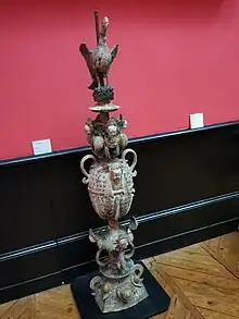 Épi de faitage en terre cuite, datant du 16e siècle provenant du Manoir de Barville déposé dans les années 1930.