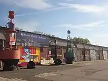 Plusieurs grandes fresques ont été réalisées sur les portes du hangar dans le cadre du festival Rouen Impressionnée en 2016.