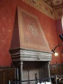 Les autres salles se trouvent dans l'édifice central, de l'autre côté de la cour. Pour les rejoindre, il faut traverser la Salle du trône, où l'on peut admirer des meubles d'époque, le plafond à caissons en bois, et une cheminée avec le blason de Saint-Pierre.