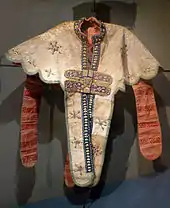 - Cape d’esquimau en parchemin et décor de plumes des îles Aléoutiennes