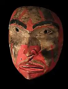 - Tsimshians (Colombie britannique, Canada) : Masque en bois et pigments.