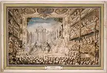 Première salle du Palais-Royal, avec la représentation d'Armide de Lully, dans la reprise de 1761.