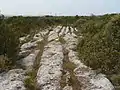 Le sol rocheux recouvrant certains domus présente des rainures profondes et parallèles pouvant résulter du passage de charrettes ou de traineaux pour le transport de blocs de pierre destinés à la construction vers la ville de Turris Libissonis, actuelle Porto Torres.