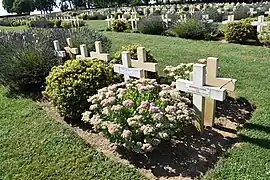 Le cimetière militaire de 13 515 m2 abrite 5 204 corps de soldats, 5 150 français dont 2 386 corps en ossuaires. Parmi eux se trouvent les corps de 54 soldats russes[3].