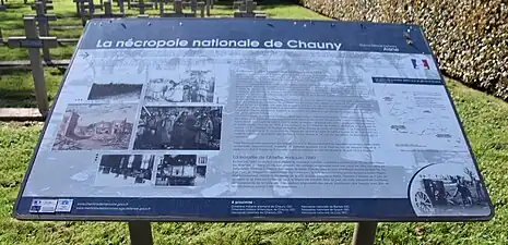 Cette nécropole nationale est créée après l'armistice, en 1919, pour regrouper les corps de soldats français inhumés dans de nombreux cimetières provisoires des environs de Chauny, Coucy-le-Château et Laon.
