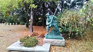 Dans un ossuaire de 4 m2, furent ensevelis les corps de 20 soldats français de l'Armée de la Loire, formée pour partie de mobiles bretons morts pendant la Guerre franco-allemande de 1870. Cet ossuaire est surmonté d'une statue de mobile aux aguets, œuvre d'Aristide Croisy[4].
