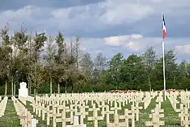 D'une superficie de 1,17 ha, la nécropole rassemble 1 610 tombes individuelles de soldats morts des suites de leurs blessures ou de maladie [2].