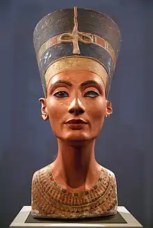 Un buste la représentant l'a rendue célèbre. Il est conservé au Neues Museum à Berlin[16]. Il s'agit d'une des œuvres de l'Égypte antique les plus copiées. On l'attribue au sculpteur Thoutmôsis, et on pense que le lieu de sa découverte était l'atelier du sculpteur. Le buste donne une idée de la manière dont les anciens Égyptiens restituaient les proportions du visage humain.