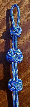 L'erse à bouton, ancêtre de la manille textile, utilise aussi le nœud de sifflet du bosco comme bouton.
