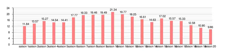 - Durée moyenne d'un épisode : 42 minutes[1]