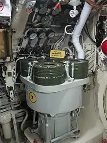 La recharge complète des batteries durait quatre heures et s'effectuait à l'aide de deux moteurs Diesel de seize cylindres en V à quatre temps construits par les chantiers de la Chatham Dockyard[3],[c 4]. Ces moteurs répondaient au standard ASR (Admirality standard range), leur puissance était de 1 840 hp chacun et ils faisaient tourner un générateur English Electric de 1 280 kW[3]. Lorsque les moteurs Diesel fonctionnaient, le sous-marin devait se trouver en surface ou tout près de celle-ci, car il était nécessaire de se débarrasser des gaz d'échappement produits par la combustion et de fournir un apport d'air frais pour les faire fonctionner[c 6]. Lorsque le sous-marin se trouvait sous l'eau près de la surface, les moteurs Diesel utilisaient alors des schnorchels, des tuyaux de métal permettant l'évacuation des gaz de combustion et l'entrée d'air frais[e 5]. Lorsque le submersible se trouvait en surface, l'ouverture de l'écoutille du kiosque facilitait l'entrée d'air requise par les moteurs Diesel[c 6].