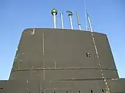 Juste au-dessus du poste de commande, se trouve la passerelle de navigation, aussi appelée kiosque ou tourelle. L'espace du kiosque était surtout occupé par la présence de sept mâts rétractables : le mât de radar, une antenne de communication, deux schnorkels, une antenne d'écoute électronique et les deux périscopes du sous-marin[c 8].