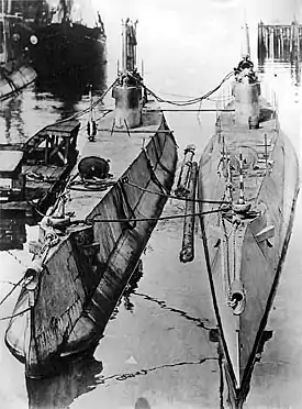 En 1921, le Canada fait l'acquisition de deux sous-marins britanniques construits à la fin de la Première Guerre mondiale, les CH-14 et CH-15[d 2]. Ces derniers ne sont en service qu'une année puisque des contraintes budgétaires entraînent la fin de leur carrière au sein de la Marine canadienne[c 13].