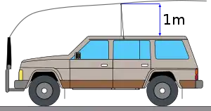 ![]() Antenne monopôle NVIS de toit sur véhicule. |