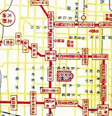 - Sources : (ja) Université Ritsumeikan Asia Pacific (en), « 近代京都オーバーレイマップ », sur Art Research Center, (consulté le ).