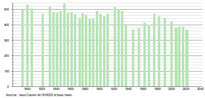 - Fiches Insee - Populations légales de la commune pour les années 2006, 2007, 2008, 2009, 2010, 2011, 2012, 2013, 2014, 2015, 2016, 2017, 2018, 2019, 2020 et 2021.