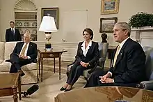 Nancy Patricia Pelosi, née D'Alesandro, est une femme politique américaine, née le à Baltimore. Membre du Parti démocrate, elle est présidente de la Chambre des représentants des États-Unis de 2007 à 2011 et de 2019 à 2023.