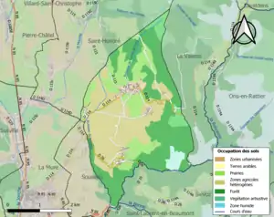 L'occupation des sols de la commune, telle qu'elle ressort de la base de données européenne d’occupation biophysique des sols Corine Land Cover (CLC), est marquée par l'importance des territoires agricoles (53,2 % en 2018), une proportion sensiblement équivalente à celle de 1990 (51,7 %). La répartition détaillée en 2018 est la suivante : forêts (38,4 %), zones agricoles hétérogènes (33,6 %), prairies (19,6 %), milieux à végétation arbustive et/ou herbacée (3,8 %), zones urbanisées (2,3 %), espaces ouverts, sans ou avec peu de végétation (2,3 %)[14].