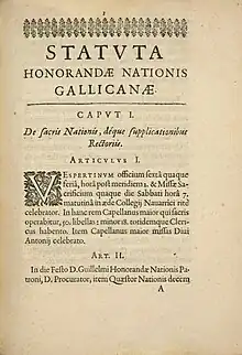 Statuta honorandæ nationis gallicanæ, recognita et reformata (Bibliothèque de la Sorbonne, NuBIS)