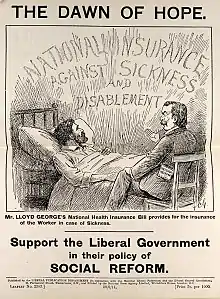 Couverture d'un dépliant publié par le Liberal Publication Department (Liberal Party - UK) en 1911 faisant la promotion du futur National Insurance Act.