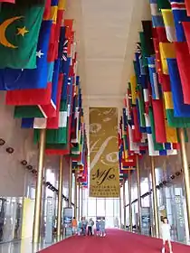 Le Hall des Nations du Kennedy Center. Au centre, la bannière du National Symphony Orchestra.