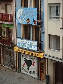 - Ikurriña : littéralement « drapeau ». Il a été dessiné par les frères Arana. Il devait être à la base le drapeau de Biscaye mais il a été adopté par la suite comme drapeau officiel de la communauté autonome du Pays basque. Le nationalisme basque l'a aussi adopté comme emblème.