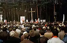 Huit ans après la mort soudaine de Macherov en 1980, le mouvement nationaliste biélorusse a commencé à réémerger, cette fois sous la direction du jeune historien Zianon Pazniak. La découverte par Pazniak en 1988 du site du charnier de Kourapaty a provoqué une réaction généralisée contre le gouvernement soviétique. À l'époque, le gouvernement soviétique a tenté en vain de dépeindre Kourapaty comme un site de charnier nazi et non soviétique. À peu près au même moment, les factions pro-occidentales et pro-russes du mouvement nationaliste commencèrent à s'affronter ouvertement[9]. Le Parti du front populaire biélorusse a été créé en 1989 sous la direction de Pazniak, et 37 de ses membres ont été élus un an plus tard, lors des élections du Soviet suprême biélorusse de 1990[29].