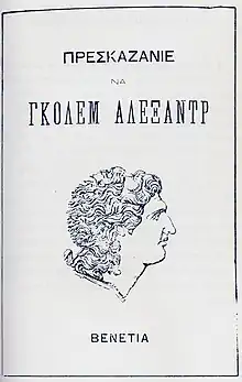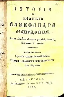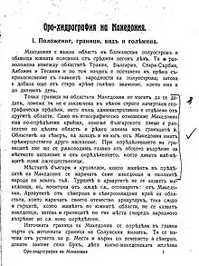 En conséquence, une propagande religieuse et scolaire grecque massive a eu lieu, et un processus d'hellénisation a été mis en œuvre parmi la population slave de la région[5],[6]. Le nom même de Macédoine, ressuscité au début du XIXe siècle après la fondation de l'État grec moderne, avec son obsession pour la Grèce antique dérivée de l'Europe occidentale, a été appliqué aux Slaves locaux[7]. L'idée était de stimuler le développement de liens étroits entre eux et les Grecs, reliant les deux parties aux Macédoniens antiques, comme contrepoids à l'influence culturelle croissante de la Bulgarie dans la région[8],[9]. En 1845, par exemple, le roman d'Alexandre a été publié en dialecte slave macédonien avec des lettres grecques[6]. Dans le même temps, l'ethnographe russe Victor Grigorovitch a décrit le changement récent du titre de l'évêque patriarcal grec de Bitola : de l'exarque de toute la Bulgarie à l'exarque de toute la Macédoine. Il a également noté la popularité inhabituelle d'Alexandre le Grand et qu'elle semblait être quelque chose qui a été récemment inculqué aux Slaves locaux[10]. En conséquence, à partir des années 1850, certains intellectuels slaves de la région adoptèrent la désignation macédonienne comme étiquette régionale, et celle-ci commença à gagner en popularité[11]. Dans les années 1860, selon Petko Slaveykov, de jeunes intellectuels macédoniens se disaient non pas bulgares, mais macédoniens, descendants des Macédoniens antiques[12]. Dans une lettre écrite à l’exarque bulgare en février 1874, Slaveykov rapporte que le mécontentement face à la situation actuelle « a fait naître chez les patriotes locaux l'idée désastreuse de travailler de manière indépendante à l'avancement de leur propre dialecte local et, plus encore, de leur propre chef ecclésiastique macédonienne »[13]. Néanmoins, d'autres intellectuels macédoniens, comme Konstantin Miladinov, continuèrent à appeler leur pays la Bulgarie occidentale et craignaient que l'utilisation de ce nouveau nom implique une identification à la nation grecque[14],[11],[15].