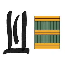 Il représente une natte en vannerie réduit dans les exemples prédynastiques les plus anciens à un simple cadrillage sans bord. Il peut, sur certaines gravures, se confondre avec un épais signe Z1. En hiératique, il peut prendre un cadrat complet contre en hiéroglyphique. Il peut toujours en hiératique se confondre avec l'hiéroglyphe N25 mais est généralement plus fin et son trait horizontal dépasse les verticaux. Il est translittéré p.