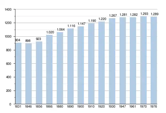 - Sources : INS, Rem. : 1831 jusqu'en 1970 = recensements, 1976 = nombre d'habitants au 31 décembre[3].