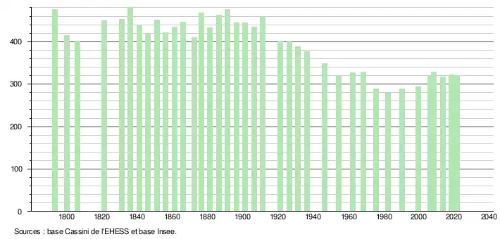 - Fiches Insee - Populations légales de la commune pour les années 2006, 2007, 2008, 2009, 2010, 2011, 2012, 2013, 2014, 2015, 2016, 2017, 2018, 2019, 2020 et 2021.