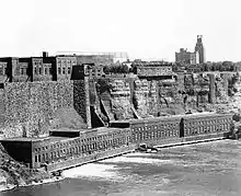 L'usine numéro deux, qui mesure 100 pieds par 176 pieds, génère une moyenne de 34 000 chevaux (horsepower) en continu. La chute totale de l’eau dans le canal, de l’avant-port au canal de fuite, est de 210 pieds. Le canal électrique, qui exploite la rivière à un point situé au-dessus de Port Day, et traverse toute la ville jusqu'à un point situé en dessous du pont supérieur de la voûte en acier, fournit un approvisionnement constant en eau toute l'année. Juste au-dessous de Port Day se trouve le début des rapides, avec une chute de plus de 50 pieds sur trois quarts de mille. En traversant un coude de la rivière, le canal débouche sur la falaise située sous le pont sur une distance totale d'environ 4 400 pieds. Construite avant l'ère de la production industrielle de courant alternatif, la centrale électrique produit de l'électricité à courant continu dans un rayon de deux miles de l'usine[7].