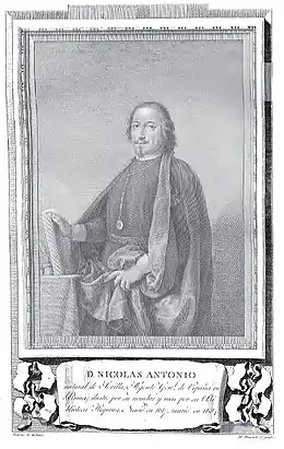 Nicolás Antonio, né le à Séville et mort le à Madrid, est un célèbre érudit à l'origine de la bibliographie moderne espagnole[1].