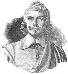 Gravure d'après le buste de Guy de la Brosse déposé à Paris au Muséum national d'histoire naturelle.