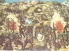 À partir du (1er août julien), l'armée grecque reprend sa progression en Anatolie ; elle parvient face à une ligne de défense turque bien fortifiée, et s'apprête à livrer la bataille de la Sakarya, à l'est du fleuve du même nom[N 11]. Le combat le plus sanglant a lieu le , à l'extrémité sud-est du front, pour la prise de Kale-Groto. Cette position stratégique est une éminence qui domine le fleuve comme une sorte d'énorme rocher dénudé, entaillé de ravins, d'où les Turcs fauchent les assaillants sous le feu croisé de leurs mitrailleuses lourdes. Les régiments qui tentent d'approcher de Kale-Groto sont repoussés les uns après les autres. Plastíras reçoit l'ordre de lancer à son tour une nouvelle attaque ; avec son régiment d'evzones au complet, gagnant mètre après mètre, et dans des affrontements sanglants qui durent jusqu'au soir, et s'achèvent au corps à corps, à la pointe des baïonnettes, il réussit à occuper le sommet de Kale-Groto où il plante le drapeau grec. Ayant perdu le contact avec les unités grecques à l'arrière, le bruit court alors qu'il fait partie des nombreux officiers tués et cette information erronée est même publiée en Grèce dans les journaux, soulevant une profonde émotion.