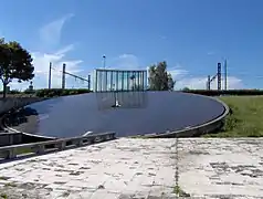 - 1987-1992 : Meta, Saint-Quentin-en-Yvelines (architectes : Euvé, Blisson, Saint-Gealme et Lully) : disque incliné de béton armé habillé de granit noir poli de 25 mètres de diamètre et 30 centimètres d'épaisseur, posé sur douze colonnes, à Saint-Quentin-en-Yvelines, symbolisant la source de la Bièvre. Au sujet du titre, Merkado déclare : « Je tiens beaucoup au titre Meta, ce n'est pas une invention : en grec, cela veut dire au-delà. [Cette sculpture] veut créer une sorte de perception, de façon presque abstraite, entre le canal et l'étang de Saint-Quentin, comme si on devait aller au-delà pour passer la voie ferrée et se retrouver un peu plus loin sur l'étang de Saint-Quentin. » Cette sculpture a été réalisée à partir des anciens plans d'eau canalisés qui alimentaient autrefois les bassins du château de Versailles. La maquette du projet date de 1985 et est reproduite dans le catalogue de l'exposition Transit de 1988[26]. Cette sculpture symbolise la chute d'une météorite qui donne naissance à la Bièvre et au canal du centre-ville[30]. À l'extérieur, il y a une cage de verre et un rayon laser qui font le lien avec la voie ferrée et le passage des trains (en effet, la voie ferrée et les trains se reflètent sur la paroi vitrée)[31]. Merkado précise : « Souvent, on photographie uniquement la partie extérieure et je [suis] souvent obligé de dire : "Vous savez qu'il y a une partie intérieure !". C'est comme l'homme, on prend une photo de l'extérieur, sans faire l'allusion pour dire : "Vous savez que cet homme, il a aussi une partie intérieure !" Il a une vie intérieure. Donc Meta, c'est une œuvre qui a une vie intérieure et aussi une vie extérieure. » À l'intérieur, il y a une crypte et un bassin d'eau dont l'acoustique est exceptionnelle[31] : sur une photographie, on voit Merkado en train de photographier une violoncelliste dans cette crypte[32].