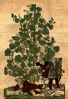 Dans la tradition juive et la littérature rabbinique sur Noé, les rabbins blâment Satan pour les propriétés enivrantes du vin.[16][10]