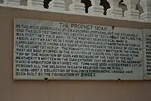 Noé (arabe نوح Nūḥ) et son histoire sont présents dans plusieurs sourates coraniques[note 1],[note 2],[61]. Il est cité 43 fois dans ce texte[62] et la sourate 71 lui est particulièrement consacrée. Elle en porte le nom[note 3],[61].