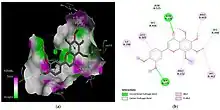 Site actif de l'acétylcholinestérase avec la nobilétine à gauche interactions de liaison H