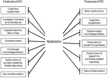 Comme d'autres PMF, la nobilétine a des effets bénéfiques sur la fonction cognitive dans de nombreux modèles expérimentaux (maladie d'Alzheimer, la maladie de Parkinson et la démence[31]) par son action sur le stress oxydatif, la neuro-inflammation et l'amélioration de la plasticité synaptique.