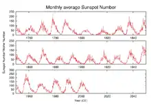 Lors du cycle 19, le nombre de Wolf a atteint 190 tandis qu'il n'a pas dépassé 70 lors du cycle 14. Malgré son imprécision, le nombre de Wolf a l'intérêt d'exister depuis 250 ans tandis que l'observation scientifique avec des moyens modernes n'a que quelques cycles dans ses bases de données.
