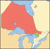 Les zones dans le Nord de l'Ontario sont les districts de Algoma, Cochrane, Kenora, Manitoulin, Nipissing, Rainy River, Sudbury, Thunder Bay et Timiskaming. La ville de Grand Sudbury constitue sa propre division de recensement, et n'appartient à aucun district.